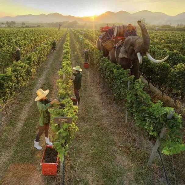 ¿Sabían que en Tailandia también se hace vino? Y no es desde hace mucho, recién en 1991 palntaron las primeras vides y tuvieron la primera cosecha comercial en 1995. Tienen muchas particularidades, pero las que más se destacan es que a sus viñedos los llaman «flotantes» ya que cada parcela está conectada por canales por donde transportan la uva cosechada. Por otro lado, en sus fincas trabajan con elefantes. Lindo para visitar, no creen?