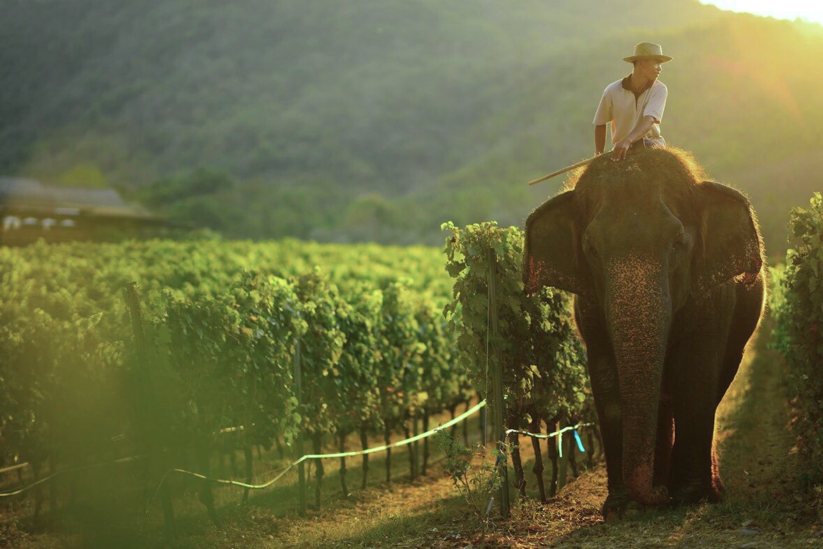 ¿Sabían que en Tailandia también se hace vino? Y no es desde hace mucho, recién en 1991 palntaron las primeras vides y tuvieron la primera cosecha comercial en 1995. Tienen muchas particularidades, pero las que más se destacan es que a sus viñedos los llaman «flotantes» ya que cada parcela está conectada por canales por donde transportan la uva cosechada. Por otro lado, en sus fincas trabajan con elefantes. Lindo para visitar, no creen?