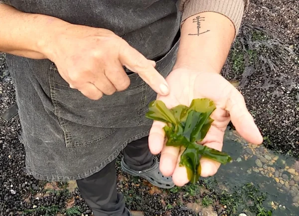 Utiliza tres clases de algas: ulva (lechuga de mar), luche y undaria (wakame), esta última exótica e invasora, y las recolecta a mano con mucho cuidado para que puedan seguir creciendo. Son las mismas algas que crecen en la mayor parte de la costa patagónica. El secreto está en equilibrar su presencia en los platos. “Tienen sabor marino”, explica.