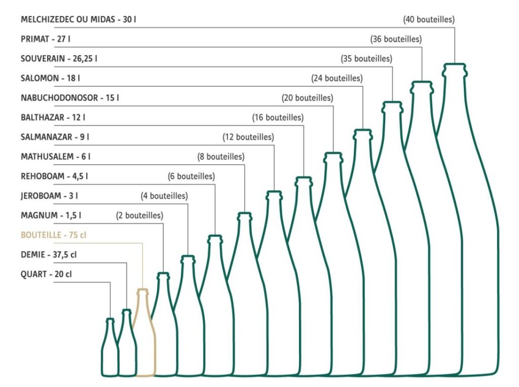 Los Champenois también desarrollaron botellas más grandes, llegando incluso al gigantismo, reservadas a momentos excepcionales.