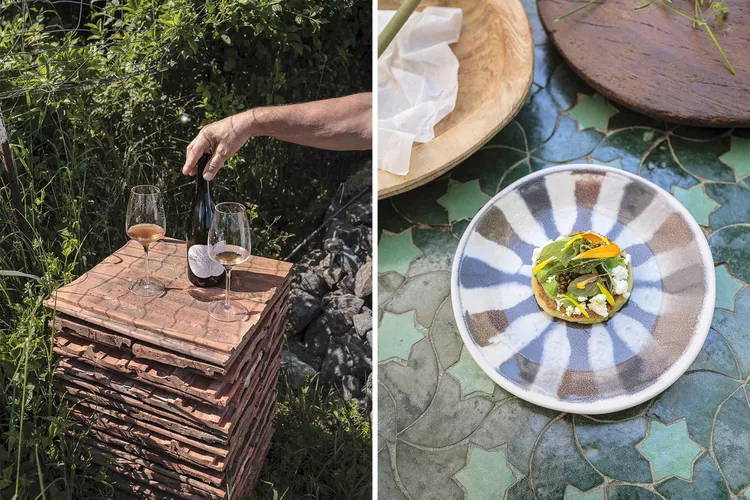 El conjunto de vinos que acompañó la comida incluyó varios de Gut Oggau, una bodega fundada en 2007 por la otra hija de los fundadores de Taubenkobel, Stephanie, y su esposo, Eduard Tscheppe, quien anteriormente era un enólogo convencional en Estiria. El almuerzo demostró sin lugar a dudas cómo los vinos naturales austriacos pueden maridar incluso con la cocina más refinada. No es que fueran del todo convencionales; algunos aún estaban un poco desfasados según los más estrictos estándares de decoro. Un ultraconservador en el panel de cata de una junta de vinos austriaca bien podría haber encontrado alguna pega.