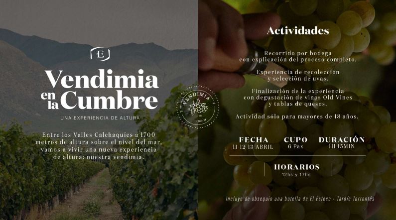 En abril, Bodega El Esteco invita a todos los amantes del vino y la naturaleza a vivir una experiencia única en uno de los destinos más exclusivos de Argentina. Los días 11, 12 y 13 de abril, la bodega abrirá sus puertas para una jornada inolvidable en los Valles Calchaquíes, a 1700 metros sobre el nivel del mar, donde los visitantes podrán adentrarse en el fascinante mundo de la vendimia, en una de las bodegas más destacadas y representativas del norte argentino.