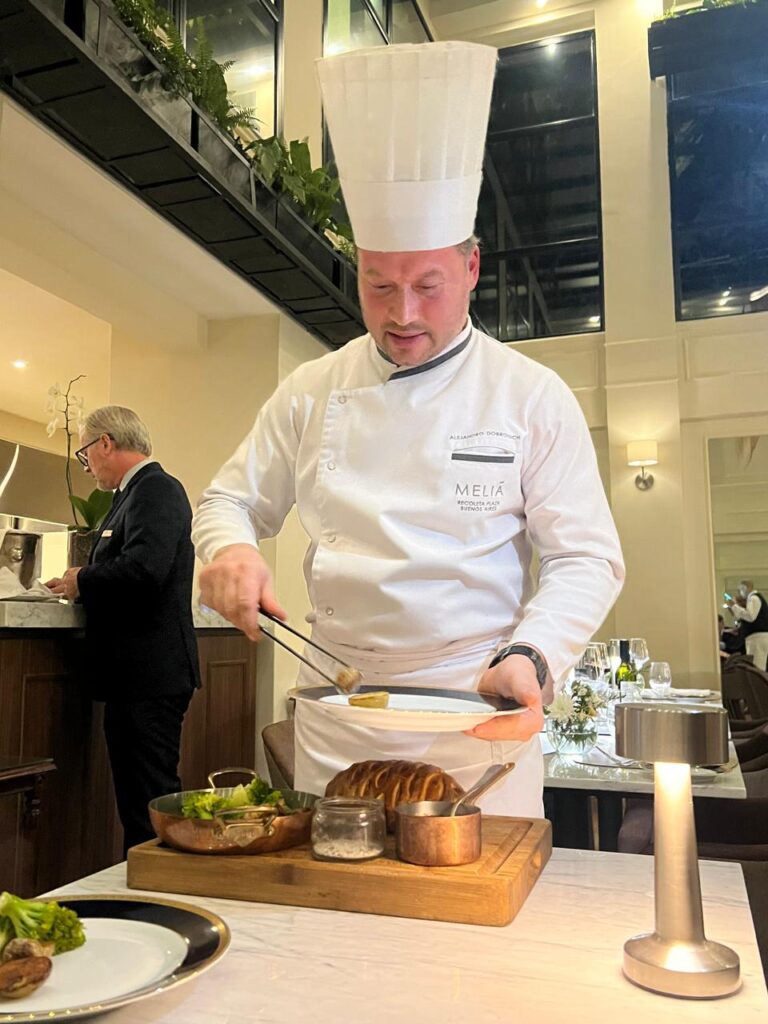La cocina, técnica y escénica, está a cargo del chef Alejandro Dobronich, cocinero corporativo que busca una cocina de base francesa pero con impronta española, ya que la cadena Meliá es ibérica, con el aporte de algunos rasgos asiáticos. Dobronich se formó en la Unión de Chefs, con su maestro y amigo Víctor Molina, y en el IAG (Instituto Argentino de Gastronomía).