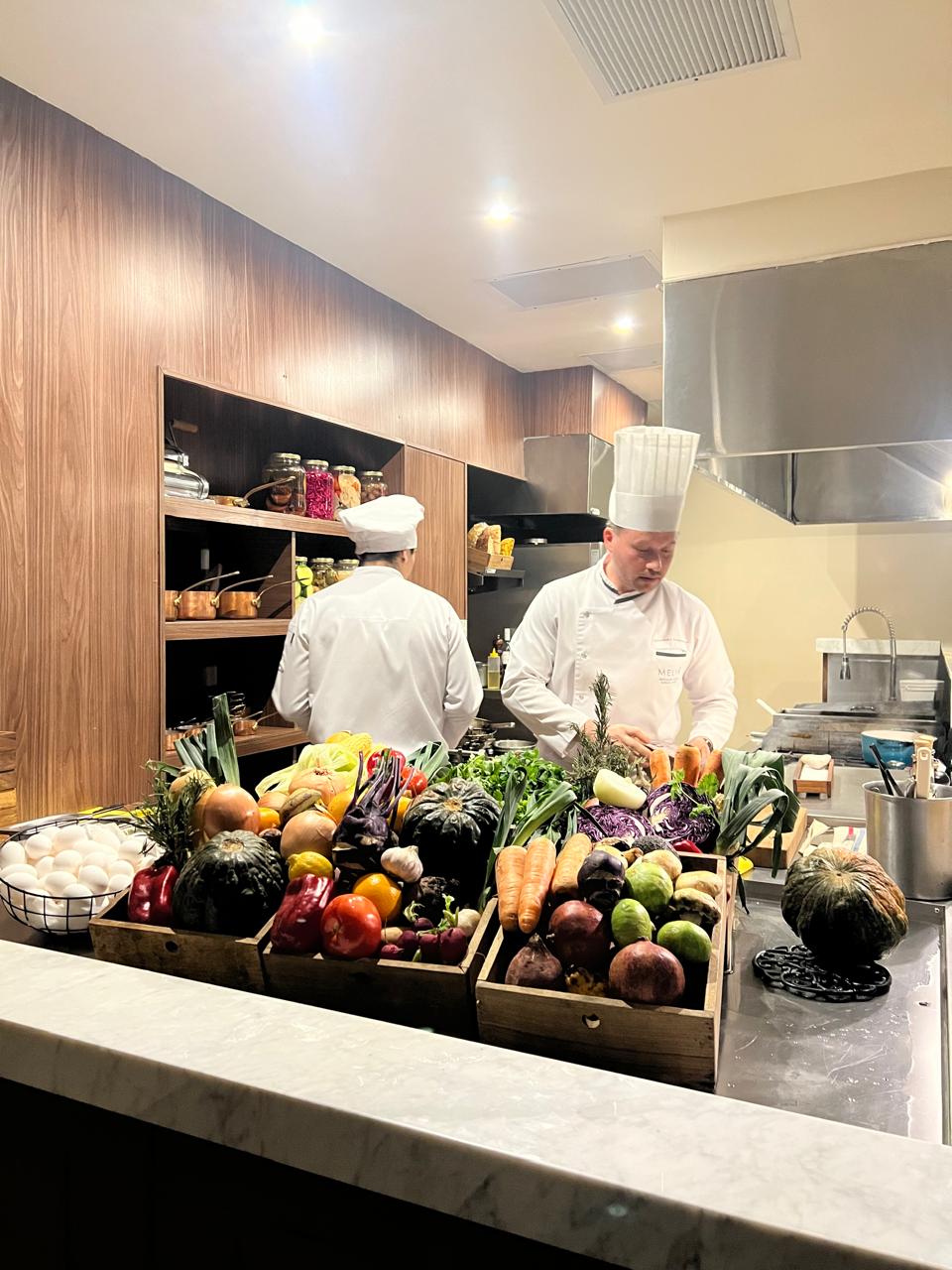 La cocina, técnica y escénica, está a cargo del chef Alejandro Dobronich, cocinero corporativo que busca una cocina de base francesa pero con impronta española, ya que la cadena Meliá es ibérica, con el aporte de algunos rasgos asiáticos. Dobronich se formó en la Unión de Chefs, con su maestro y amigo Víctor Molina, y en el IAG (Instituto Argentino de Gastronomía).