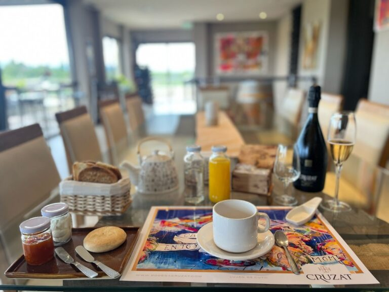 Los desayunos están disponibles de martes a sábados a las 9:30, únicamente con reserva previa, que puede realizarse vía correo electrónico (info@bodegacruzat.com), a través del sitio web (Visitas Cruzat) o por teléfono (+54 9 2612 54-5171).