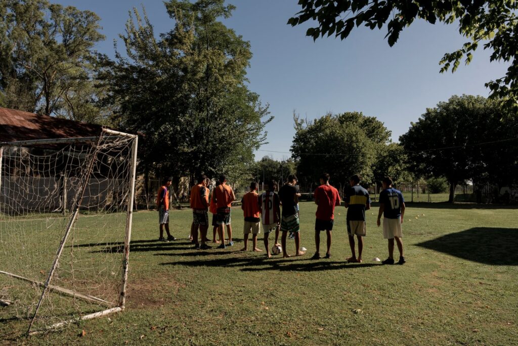 Cuando los partidos terminan, el profe recoge los materiales con calma. La gran mayoría vuelve a sus habitaciones y se prepara para el almuerzo. Algunos se quedan charlando. Uno le cuenta que en breve tendrá una salida de doce horas. Otro, tendrá una entrevista con el juez. Los escucha y les habla con cariño.