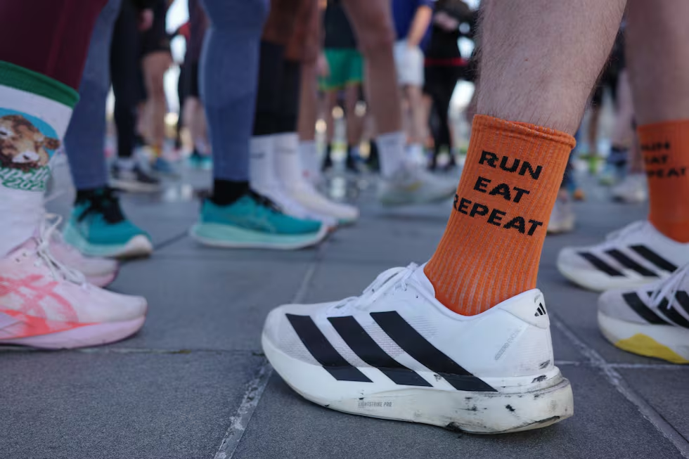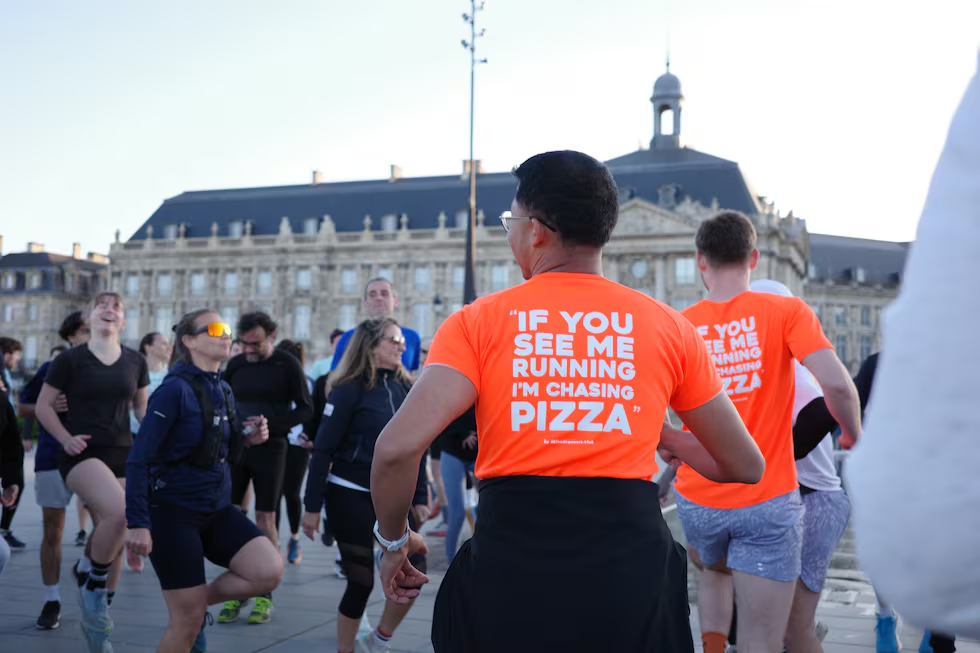 “Siempre decimos que en nuestros encuentros, el calentamiento es más duro que la carrera en sí”, cuenta a pleno pulmón Théo Delahye, uno de los cofundadores, antes de dar el pistoletazo de salida. “¿Quién quiere correr rápido? ¿Sólo uno? ¿Y quién quiere correr despacio?”, pregunta Delahye. La segunda opción levanta más pasiones que la primera. No hay que engañarse, la idea de ir a comer una bomba calórica después de una carrera no es lo más saludable, pero aquí los corredores no se esconden: “Correr es una actividad social, la gastronomía también. Las dos combinadas son todavía más potentes. Hay bastantes grupos de amigos e incluso parejas que se han formado desde noviembre. Podríamos decir que es el nuevo Tinder”, dice Théo Chaudet, el otro creador de Food Runners Club. El dúo ha registrado la marca, que llevan estampada en camisetas con frases como “Si me ves corriendo, estoy persiguiendo una pizza”, y calcetines con la orden que define al colectivo: “Come, corre, repite”.