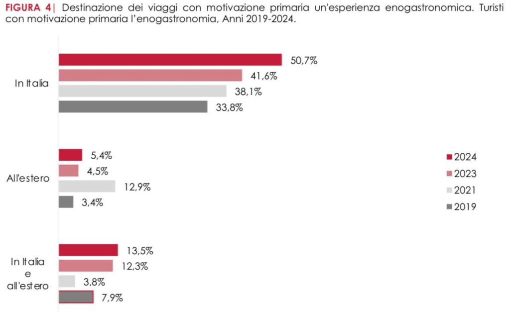 Cifras que reflejan y son consecuencia del crecimiento de las búsquedas en la web de información y sugerencias sobre viajes gastronómicos y enológicos: basta pensar que, en comparación con 2023, las búsquedas en la web de la palabra «turismo de cocina» por parte de los británicos han aumentado un 250% mientras que las de «mejores ciudades para comer en el mundo» un 143%.