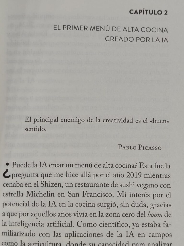 En esta conversación, el físico confiesa divertido que hasta su madre participó en parte de los simulacros culinarios que aparecen en el libro: “Me mandaba una foto de los alimentos que tenía en la nevera en ese momento y ChatGPT le proponía dos recetas diferentes con esos alimentos. Las pruebas de los platos las hicimos juntos, después, ella sola empezó a usar la herramienta para cocinar aun sin tener ningún conocimiento previo de ella”. Y prosigue: “Espero que este libro ofrezca a la gente esa posibilidad”.