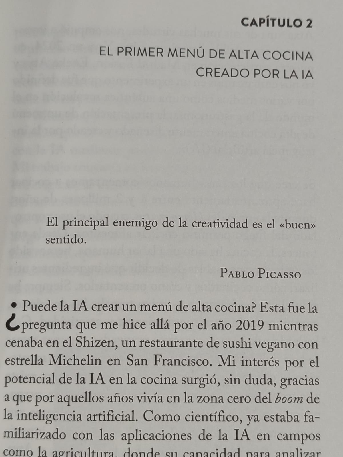 En esta conversación, el físico confiesa divertido que hasta su madre participó en parte de los simulacros culinarios que aparecen en el libro: “Me mandaba una foto de los alimentos que tenía en la nevera en ese momento y ChatGPT le proponía dos recetas diferentes con esos alimentos. Las pruebas de los platos las hicimos juntos, después, ella sola empezó a usar la herramienta para cocinar aun sin tener ningún conocimiento previo de ella”. Y prosigue: “Espero que este libro ofrezca a la gente esa posibilidad”.