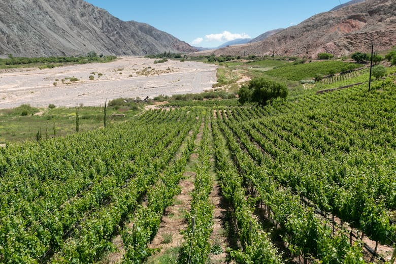 Respecto de los vinos de la Quebrada, asegura que “son fluidos, con una nota de frescura y largos en boca. Estamos a 2.300 msnm y la altura da amplitud térmica: de día 30° y de noche 10°. Nuestras plantas son libres de hongos y no necesitamos demasiados pesticidas. Usamos telas de granizo, pero por los pájaros porque, si no, se las devoran”.