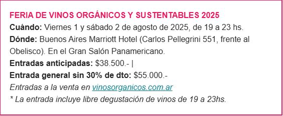 El próximo 1 y 2 de agosto, vuelve Feria de Vinos Orgánicos y Sustentables, el encuentro que desde hace más de una década impulsa una nueva forma de pensar, hacer y disfrutar el vino que combina calidad y responsabilidad.