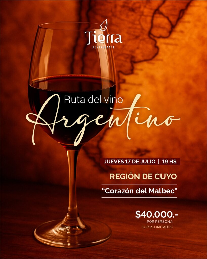 La primera edición del ciclo estará dedicada a Cuyo, con una cuidada selección de etiquetas que dialogan con sabores tradicionales reinterpretados por el equipo de Tierra Restaurante. La propuesta será guiada por la sommelier, quien irá introduciendo cada vino y su maridaje.