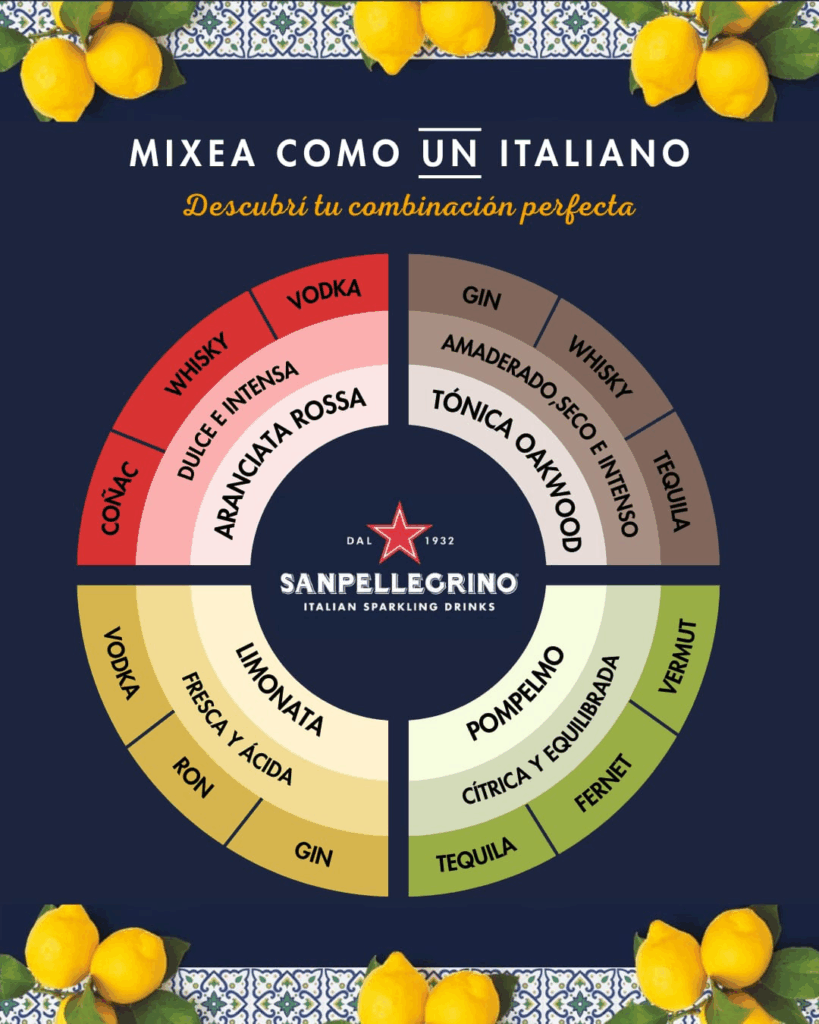 Presente en más de 150 países, los productos de Sanpellegrino son conocidos y buscados en todo el mundo. Su propuesta se diferencia de las opciones masivas de bebidas gasificadas al transmitir un estilo de vida inspirado en la cultura italiana: fresco, elegante y auténtico.