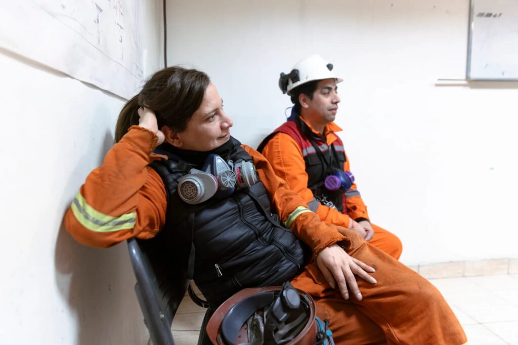 El hombre de seguridad nos explica que, por los gases, debemos dejar afuera los celulares: podrían explotar. Que debemos llevar el casco, la linterna y el autorrescatador: si hay problemas, al abrirlo, contaremos con media hora de oxígeno químico. Vamos a entrar en una camioneta: recorreremos unos ocho kilómetros y, luego, caminaremos. Carla trabaja de oficial mecánica: de lunes a viernes, durante seis horas arregla distintos tipos de máquinas. Cada dos semanas rota turnos de madrugada. Mientras posa para las fotos, dice que aquí, en el interior de la mina, todos somos iguales.