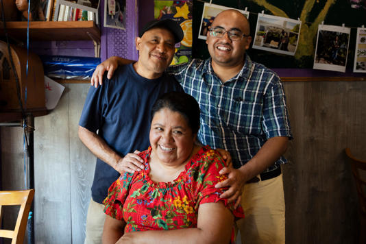 Un sitio así los hace sentir mucho más plenos. De las paredes de color morado, cuelgan los lienzos de Marco, imágenes de sus campaña para ser beneficiario de DACA, un diploma del Ayuntamiento de la Ciudad de Nueva York en honor a Méndez y Saavedra por su contribución a la comunidad, y muchas fotos de personas que han pasado en todos estos años por el lugar. No hay fotos de Alexandria Ocasio-Cortés, que estuvo en La Morada, ni del actor Jesse Eisenberg, ni de Bill de Blasio. “Él es famoso”, dice Saavedra del ex alcalde. “Pero yo recibo más de esa otra clase de gente que viene a comer”.