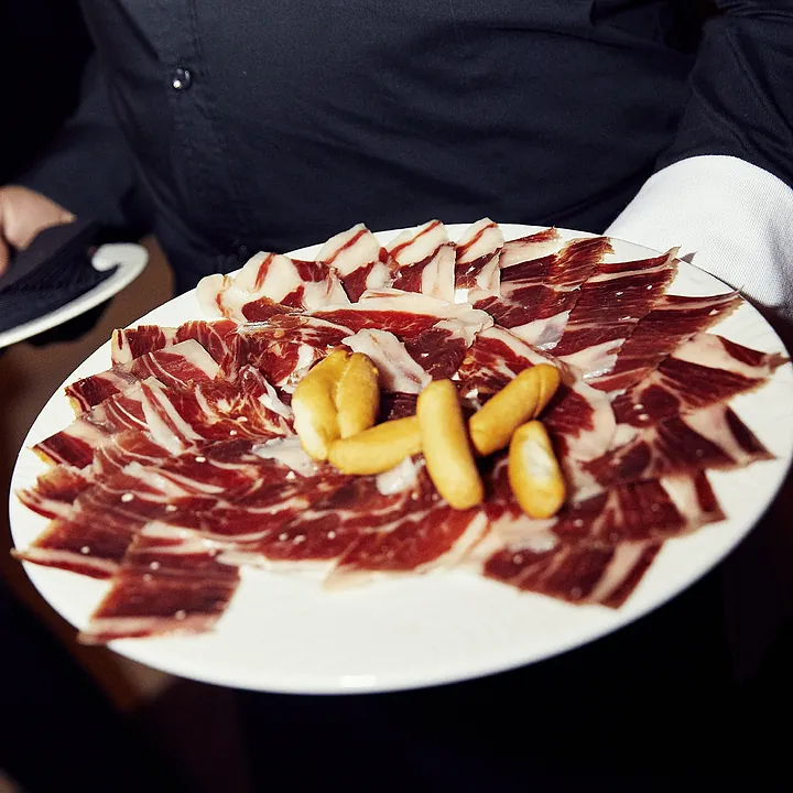 Es importante apuntar que las lonchas en el plato no deben estar superpuestas, para que se despeguen mejor. Lo habitual es que sean 80 gramos de jamón. Un buen plato de jamón ibérico debe contener lonchas tan finas que pese 80 gramos en total.