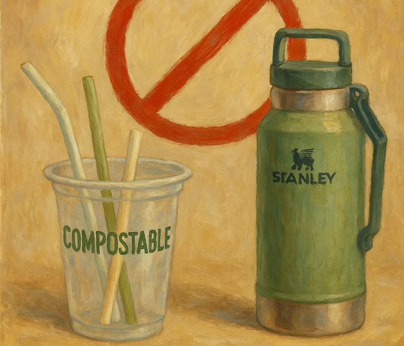 Entonces, ¿qué nos queda de economía circular? ¿Usar sorbetes compostables? ¿Enterrar una pila en un relleno de seguridad? ¿Usar biodiésel? Un momento, ¡ya lo tengo!: llevar el termito Stanley a todos lados… No nos engañemos, estamos lejos del gran desafío, del gran cambio, de la gran transformación.