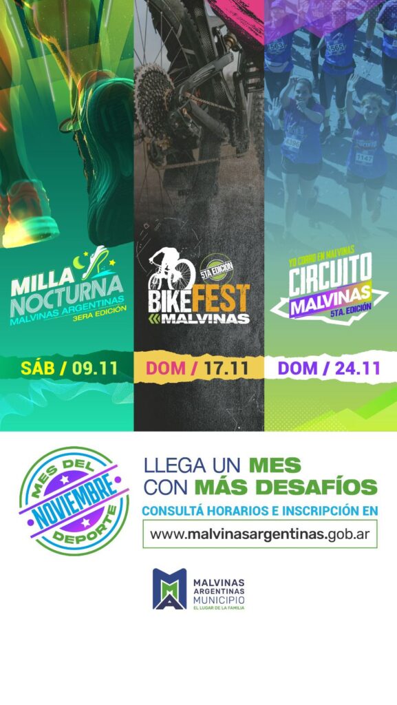 Para ser parte de cualquiera de estos eventos, los interesados pueden inscribirse y obtener más información en la página oficial del municipio: www.malvinasargentinas.gob.ar