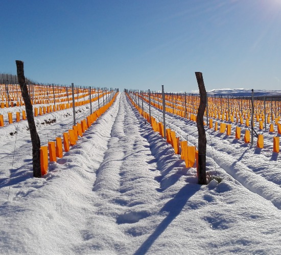 Otronia es un lugar muy especial donde los vinos logran un carácter único gracias a los intensos fríos que forjan su complejidad, delicadeza y longevidad. El clima extremo, la intensa radiación solar y los fuertes vientos se presentan como un gran desafío, obligando a acondicionar el viñedo de forma natural, con la plantación de miles de árboles y la instalación de aspersores para proteger a la vid y combatir las heladas a través del congelamiento de la estructura vegetal (efecto iglú).
