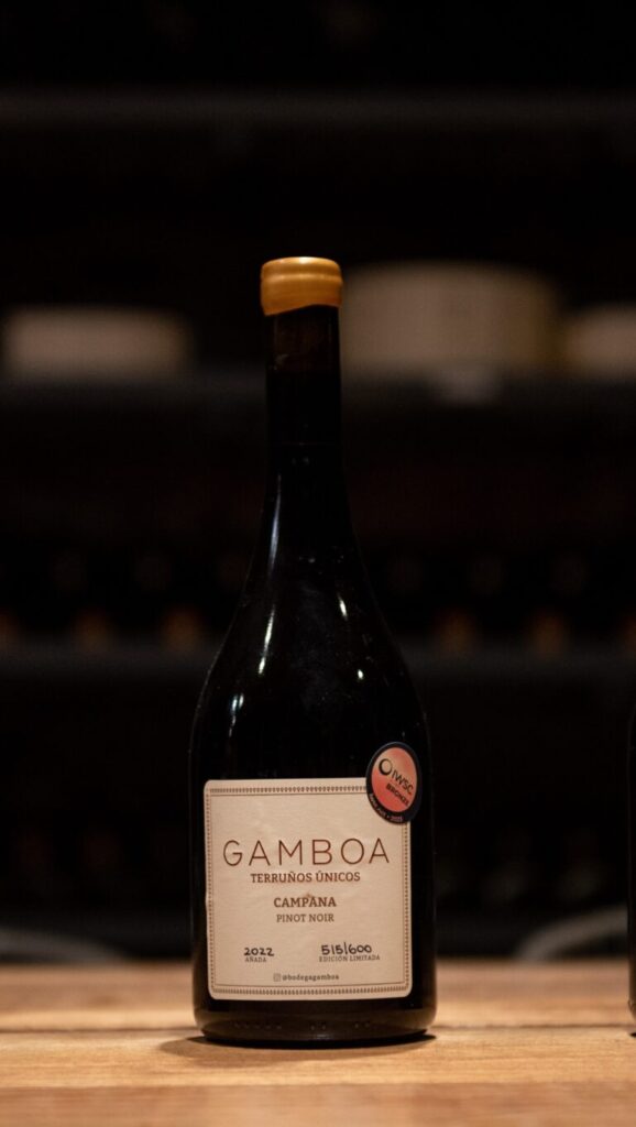 Justamente es por eso, no tenía racimo entero pero la cosecha 2022 ha sido una en la que habíamos levantado un poco la producción en la viña por cuestiones de poda invernales y estábamos buscando una madurez justa, porque es la segunda elaboración de este Pinot. En esa cuestión llegamos a tener algo de incidencia, de algo más seco en la valla. En toda esta cuestión encontrar ese punto de cosecha, que todavía buscamos el ideal año tras año. En esa situación, y sabiendo que tenemos el famoso clon 115 que él lo remarca en su informe, justamente porque creyendo él que esa rusticidad venía de un racimo entero, en realidad esa suerte de rusticidad del Pinot nuestro es debido al clon 115.