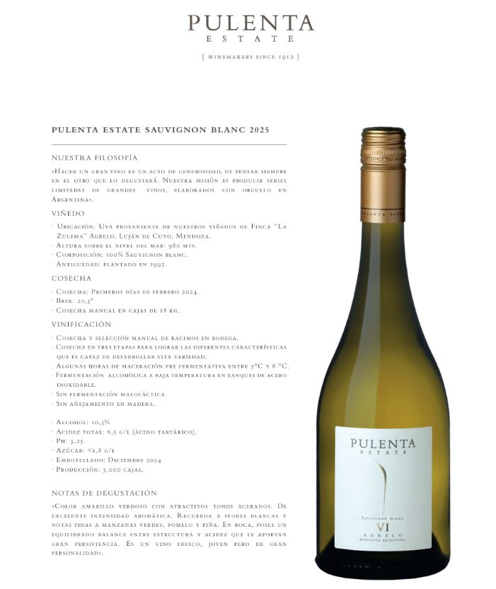 Por su parte, desde el corazón de Luján de Cuyo, en Mendoza, el Sauvignon Blanc de Pulenta Estate ofrece otra mirada sobre la variedad. Elaborado con uvas provenientes de viñedos ubicados a casi mil metros sobre el nivel del mar, se caracteriza por su elegancia, su perfil frutado y su acidez equilibrada, cualidades que lo convierten en un vino especialmente versátil en la mesa.