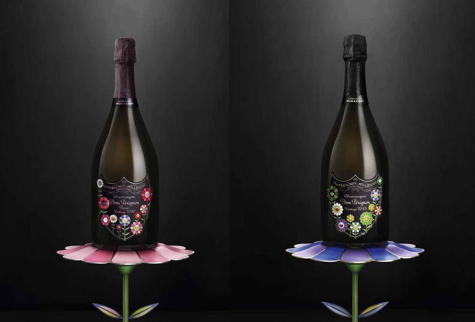 Estas ediciones especiales, disponibles desde el 1 de octubre de 2025, encarnan el diálogo entre dos mundos: la búsqueda de perfección artesanal de Dom Pérignon y la visión estética de Murakami, que celebra la energía vital, la mutación constante y la reinvención como actos creativos.