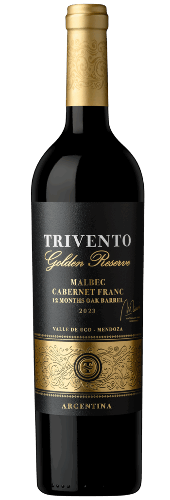 El Trivento Golden Reserve Malbec – Cabernet Franc 2023 fue criado durante 12 meses en barricas y fudres de roble francés de tercer y cuarto uso, en línea con la filosofía de la línea: respetar el carácter varietal y la expresión frutal, utilizando la madera solo como soporte y estructura, sin que interfiera en la identidad del vino.