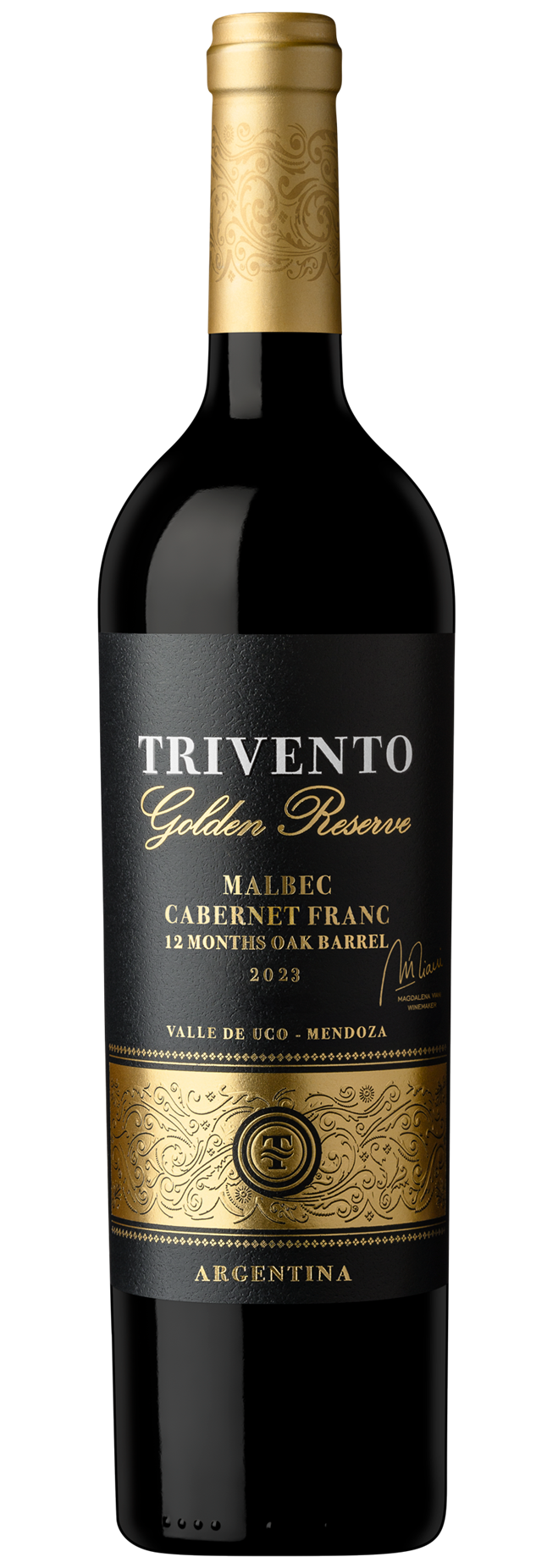 El Trivento Golden Reserve Malbec – Cabernet Franc 2023 fue criado durante 12 meses en barricas y fudres de roble francés de tercer y cuarto uso, en línea con la filosofía de la línea: respetar el carácter varietal y la expresión frutal, utilizando la madera solo como soporte y estructura, sin que interfiera en la identidad del vino.