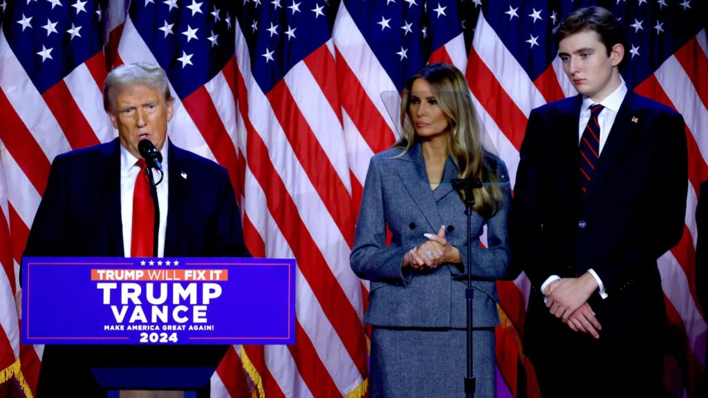 El republicano celebró su victoria, antes de que fuera definitiva, en una fiesta al efecto en West Palm Beach (Florida), cerca de su mansión de Mar-a-Lago. “Hemos logrado una victoria política que nuestro país no había visto nunca, nada como esto”, dijo. Prometió “ayudar a sanar” Estados Unidos, que iniciara una “edad de oro”. “Vamos a arreglar todo lo que está mal en este país”, añadió. Acompañado, entre otros, por su mujer, Melania Trump, y el que será su vicepresidente, J. D. Vance, agradeció a Elon Musk también presente, su apoyo en la campaña. Por supuesto, pronunció su lema: “Hacer grande a Estados Unidos de nuevo”.