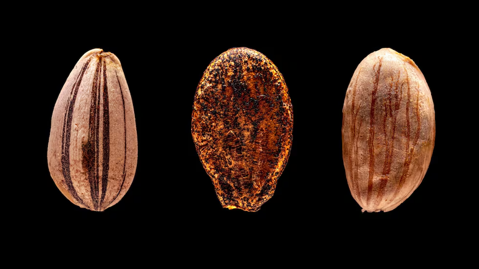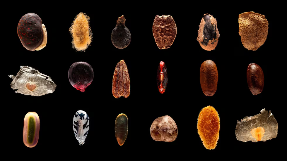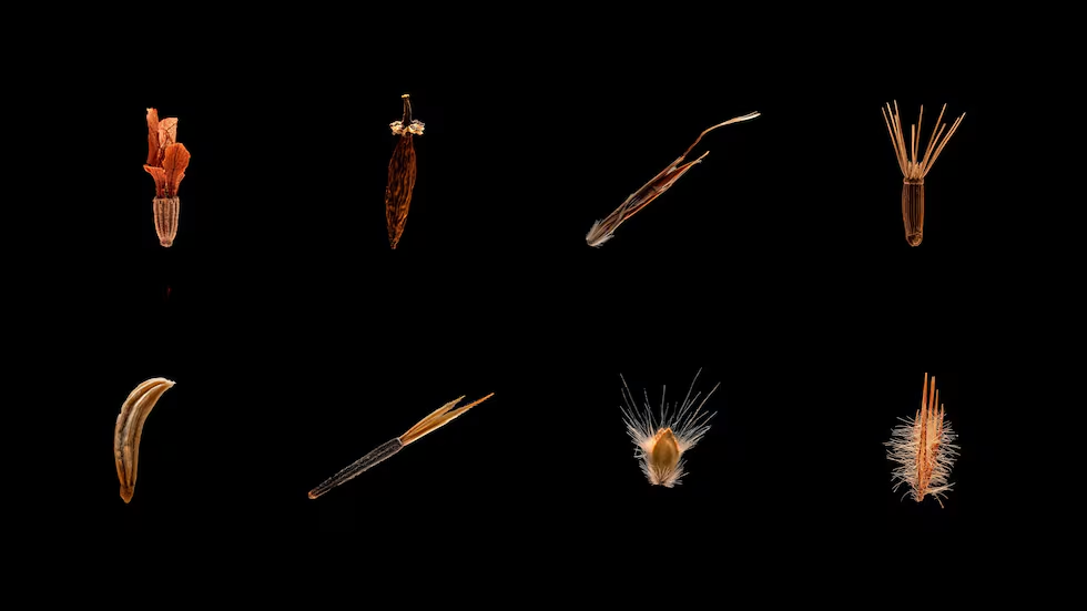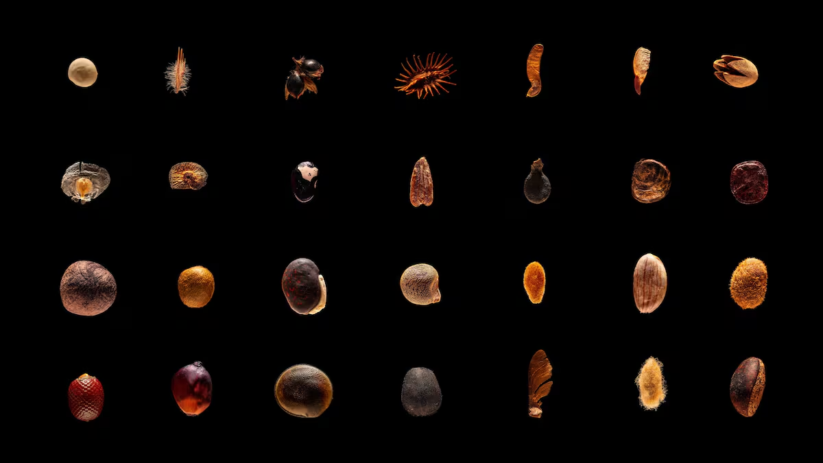 Cuando el colectivo estudiaba usar tecnología NFT, que otorga identidad digital intransferible a cualquier ítem, y visualizar en 3D cada semilla, el fotógrafo italo-brasileño Riccardo Riccio irrumpió en el proyecto. “Les propuse fotografiar cada semilla como si fuera una figura coleccionable de un álbum. No teníamos claro qué hacer, sólo que queríamos fotografiar semillas nativas”, afirma Riccio a este medio. El fotógrafo, radicado en Barcelona, empezó a retratar las semillas usando el “apilamiento de foco”. La técnica consiste en fotografiar un objeto desde varias distancias para fusionar después las imágenes. “Tiro la foto enfocando en apenas el 5% de su superficie. Después, hago otra foto enfocando otra parte. A veces, son 100 fotografías. Luego, las superpongo. El resultado es una semilla muy enfocada. Visual y artísticamente, cada semilla es un planeta sobre un fondo negro”, explica Riccio.