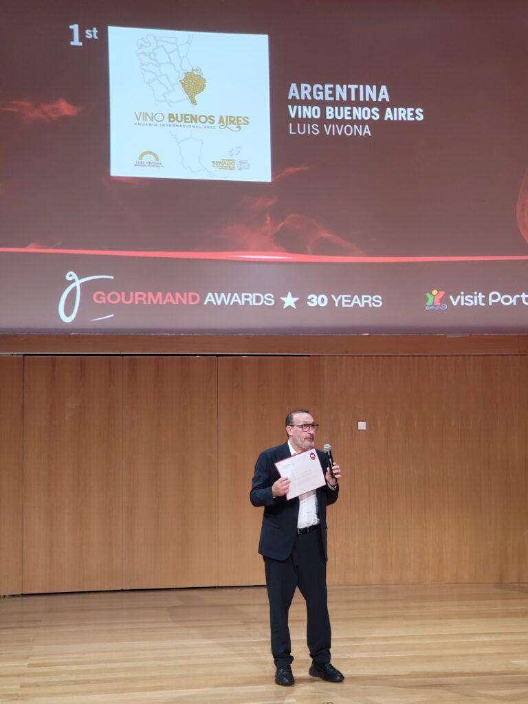 Este premio internacional distingue a los mejores libros sobre gastronomía y vino de todo el mundo. En su trigésima edición, la ceremonia se llevó a cabo en Lisboa, Portugal. “Estoy feliz, orgulloso y agradecido con la comunidad internacional literaria, con el jurado y con todos los que han difundido Vino Buenos Aires”, expresó Vivona durante el encuentro ceremonial. “Es un honor haber hilvanado la Ley N° 15.404 de promoción de la vitivinicultura en la Legislatura Bonaerense junto a los productores de vino de la provincia y escribir este libro que pone en valor la voz y el trabajo de todos ellos”, agregó.